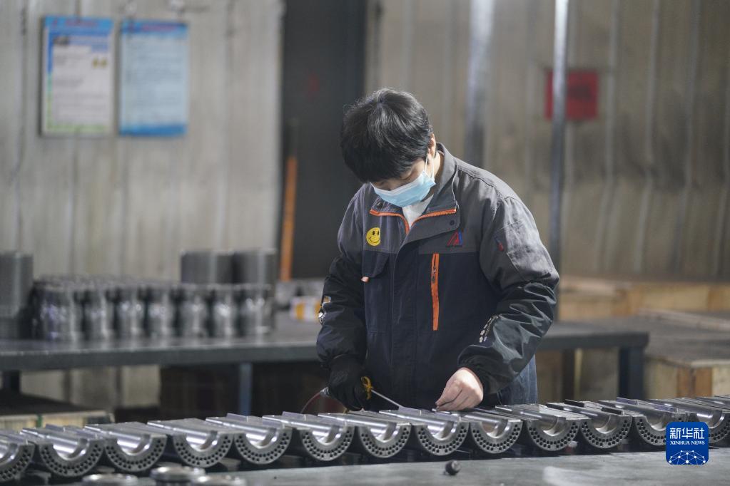 3月29日,滄州渤海新區黃驊市安迪模具有限公司工人在生產(chǎn)車(chē)間清潔模具產(chǎn)品。
