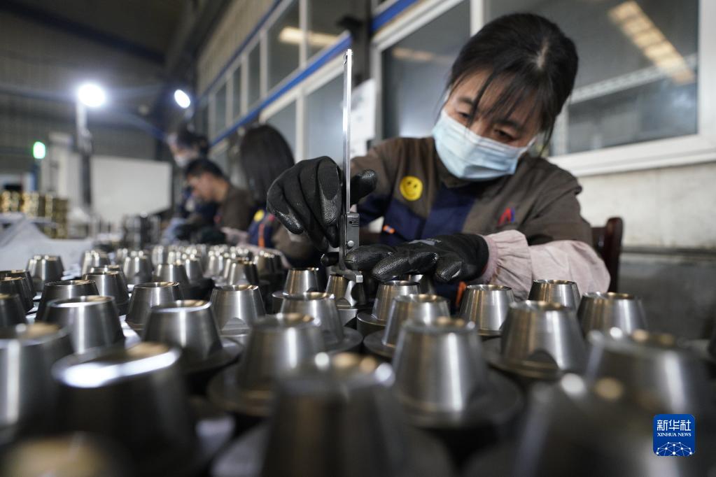 3月29日,滄州渤海新區黃驊市安迪模具有限公司工人在生產(chǎn)車(chē)間測量產(chǎn)品精度。