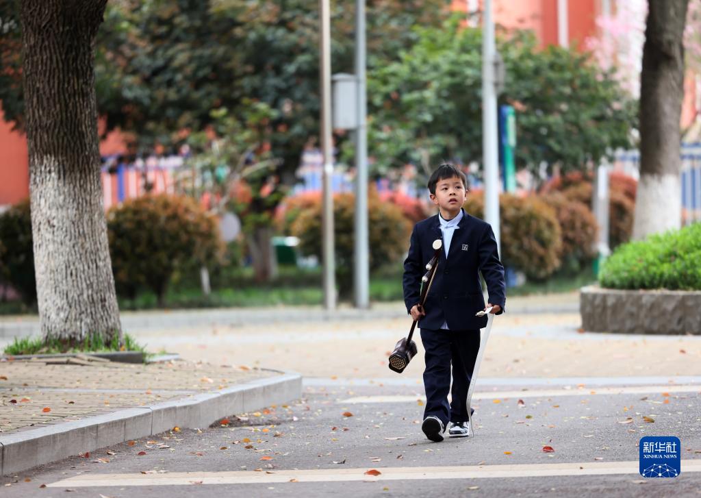 3月29日,在江蘇無(wú)錫梅村實(shí)驗小學(xué),一名學(xué)生前去上二胡課。