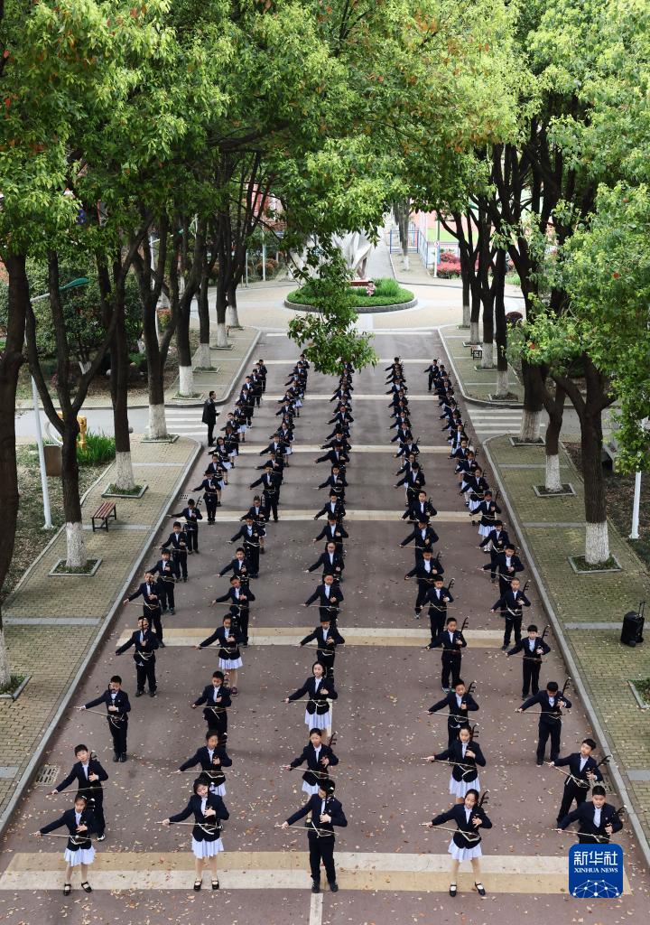 3月29日,江蘇無(wú)錫梅村實(shí)驗小學(xué)學(xué)生集體演奏二胡。