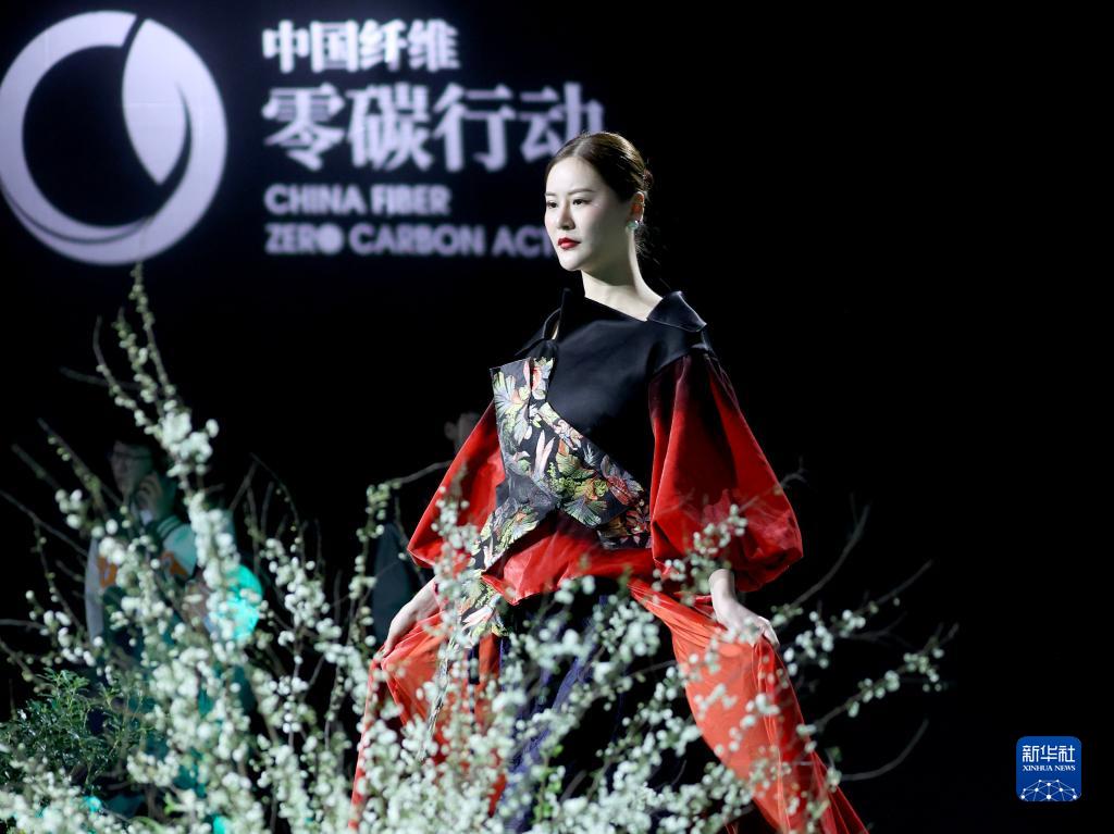 3月29日,模特在“綠色纖維制品可信平臺”發(fā)布會(huì )上展示可循環(huán)再利用的時(shí)裝。