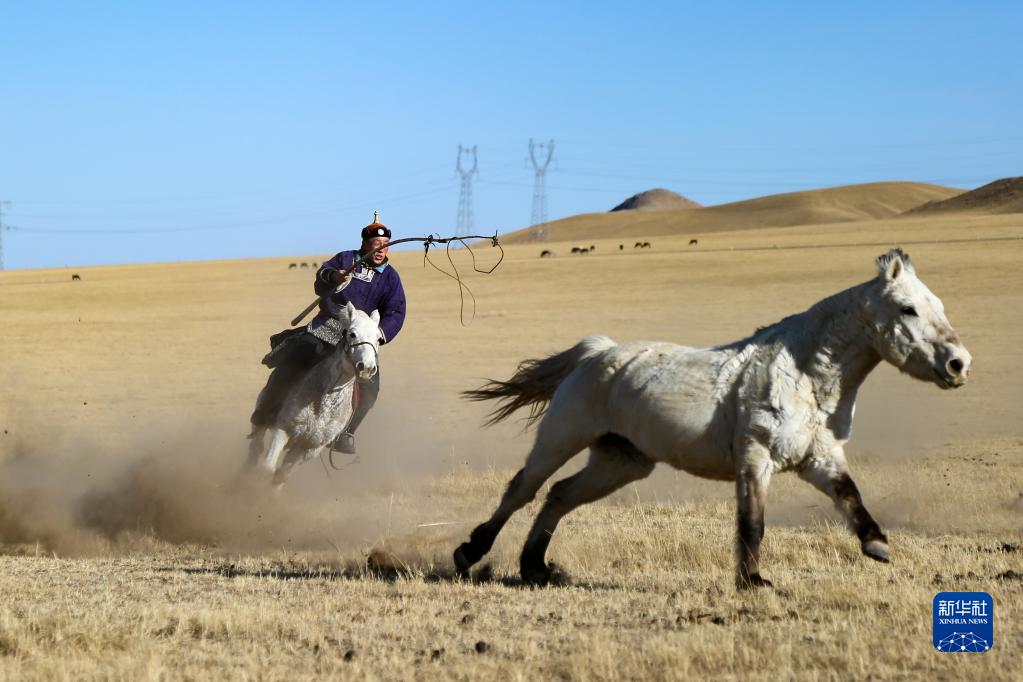 3月29日,錫林郭勒盟西烏珠穆沁旗的牧民在草原上套馬。