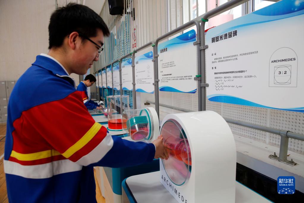3月29日,中學(xué)生在校園流動(dòng)科普巡展中體驗趣味科學(xué)裝置。