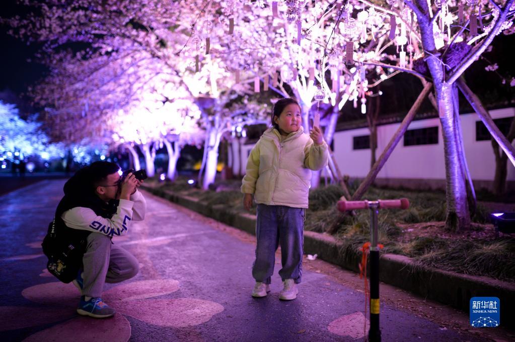 近日,江蘇無(wú)錫太湖黿頭渚景區里櫻花盛放,許多游客選擇夜賞櫻花,感受春天的浪漫。