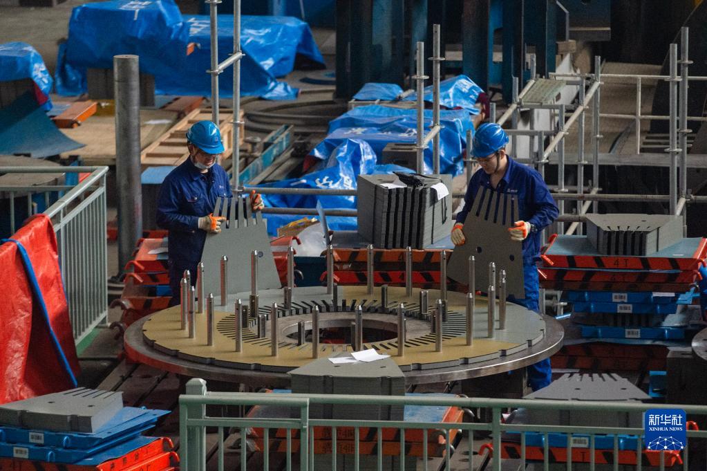 3月29日,在哈電集團哈爾濱電機廠(chǎng)有限責任公司的生產(chǎn)車(chē)間,工人在進(jìn)行生產(chǎn)作業(yè)。