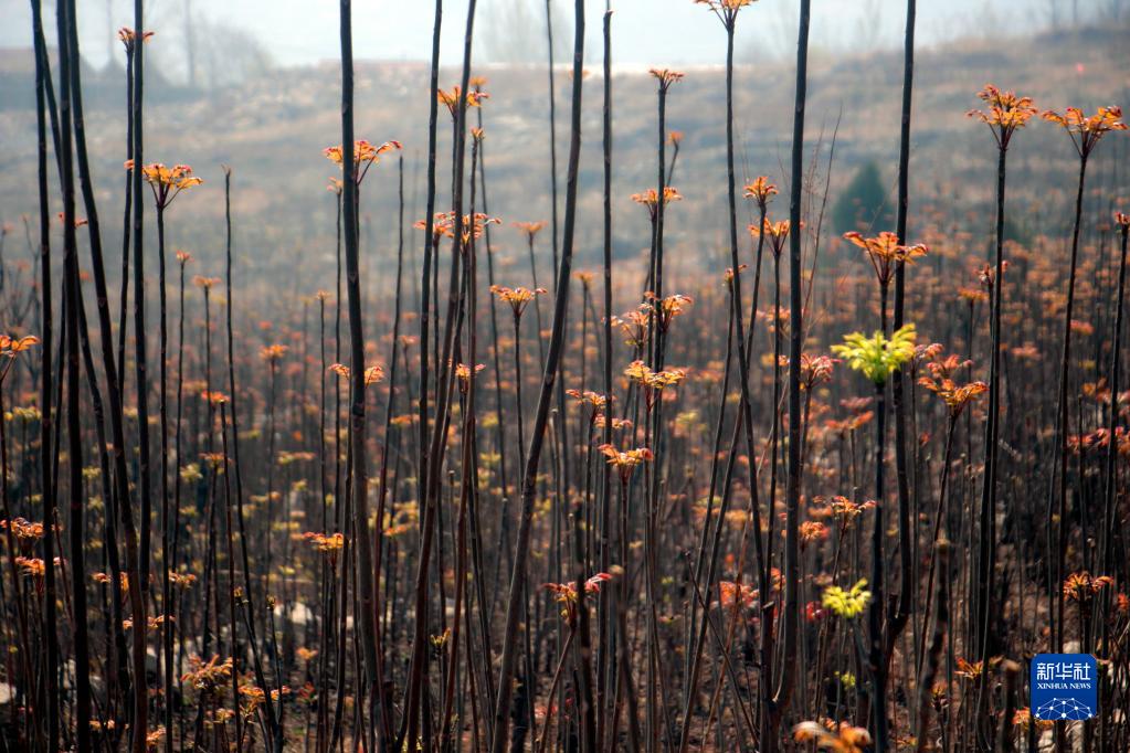 一叢叢紅綠相間的香椿芽長(cháng)勢喜人(3月29日攝)。