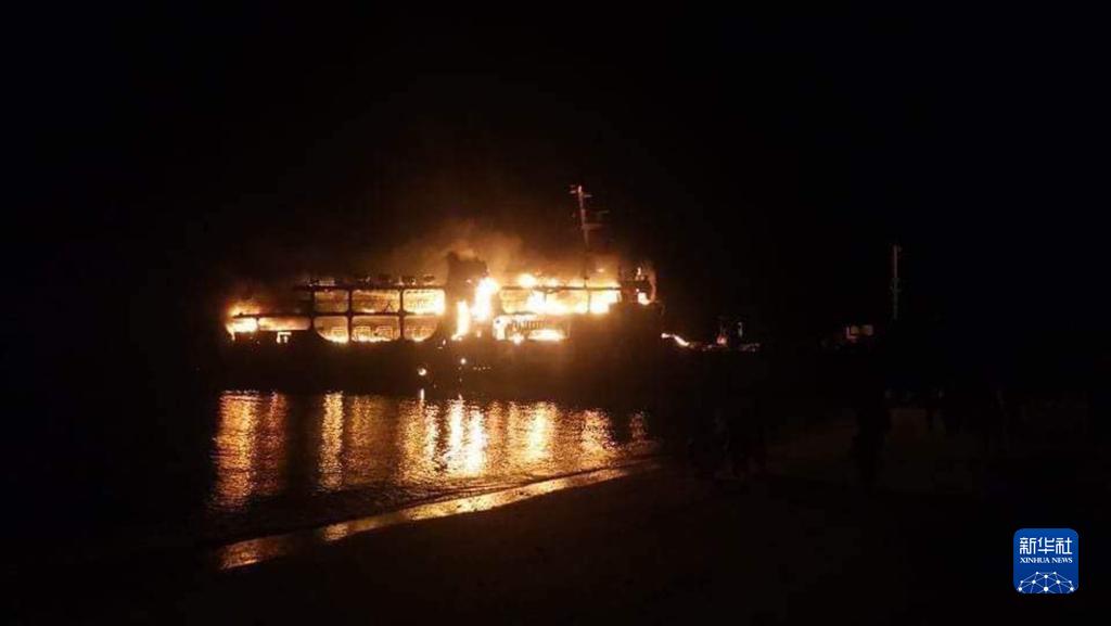 這是3月30日在菲律賓南部巴西蘭省附近海域拍攝的起火渡輪。
