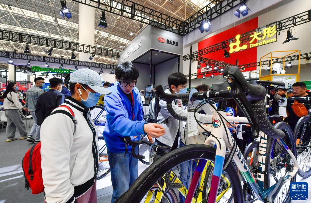 3月30日,觀(guān)眾在自行車(chē)展區參觀(guān)展出的自行車(chē)。