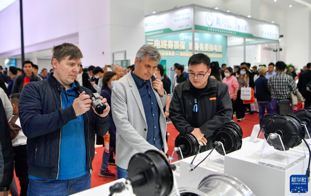 3月30日,來(lái)自俄羅斯的兩位研發(fā)技術(shù)人員在展會(huì )會(huì )場(chǎng)與國內某電動(dòng)車(chē)部件生產(chǎn)企業(yè)洽談。