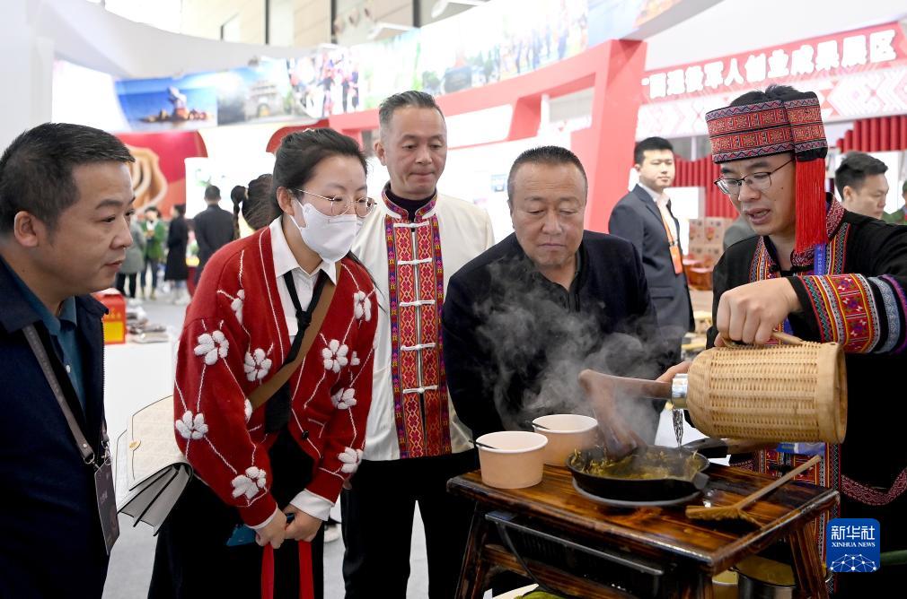 3月30日,首屆全國退役軍人創(chuàng )業(yè)創(chuàng )新成果展交會(huì )現場(chǎng),參展人員現場(chǎng)展示產(chǎn)品。