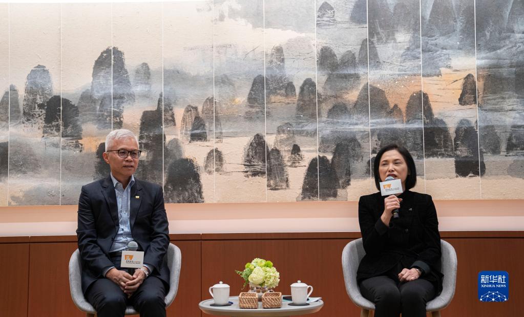 3月17日,西九文化區管理局行政總裁馮程淑儀(右)、香港故宮文化博物館館長(cháng)吳志華在接受媒體采訪(fǎng)。新華社記者 呂小煒 攝