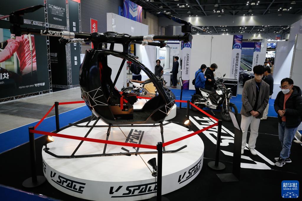 3月31日,在韓國京畿道高陽(yáng)市韓國國際展覽中心,參觀(guān)者在“2023首爾移動(dòng)出行展”上觀(guān)看城市空中交通工具。