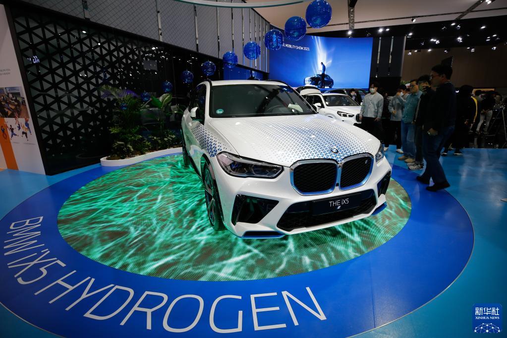 3月31日,在韓國京畿道高陽(yáng)市韓國國際展覽中心,人們在“2023首爾移動(dòng)出行展”上參觀(guān)氫燃料電池車(chē)。