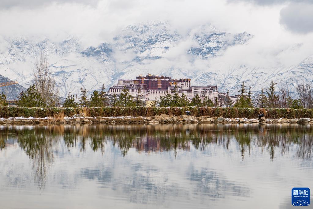 從拉薩南山公園拍攝的雪后布達拉宮(3月30日攝)。