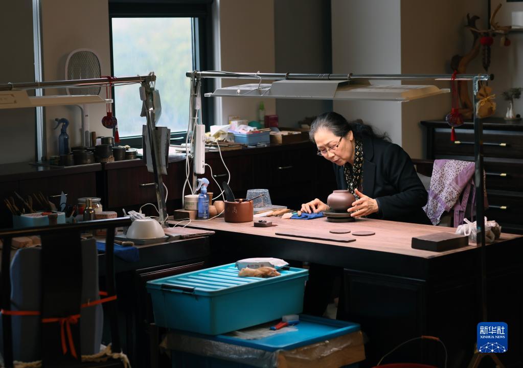 江蘇宜興:陶瓷藝術(shù)大師曹婉芬潛心紫砂藝術(shù)近70載