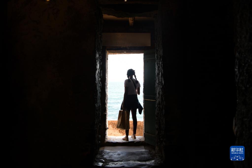 3月23日,游客在塞內加爾戈雷島奴隸博物館內參觀(guān)“自由之門(mén)”?!白杂芍T(mén)”指奴隸被買(mǎi)主挑選后,由此門(mén)走出并登上奴隸船,從狹小的奴隸屋“被解放”,被運到未知目的地供人奴役。