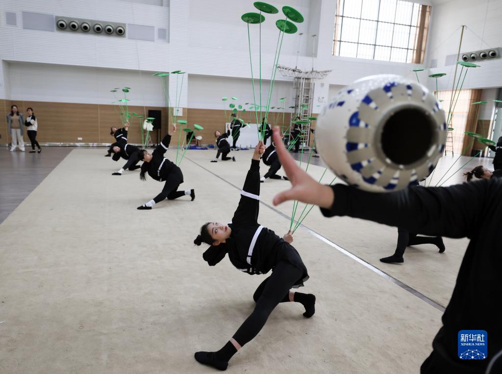 3月31日,演員們在位于江蘇省鹽城市建湖縣的江蘇省雜技團訓練。