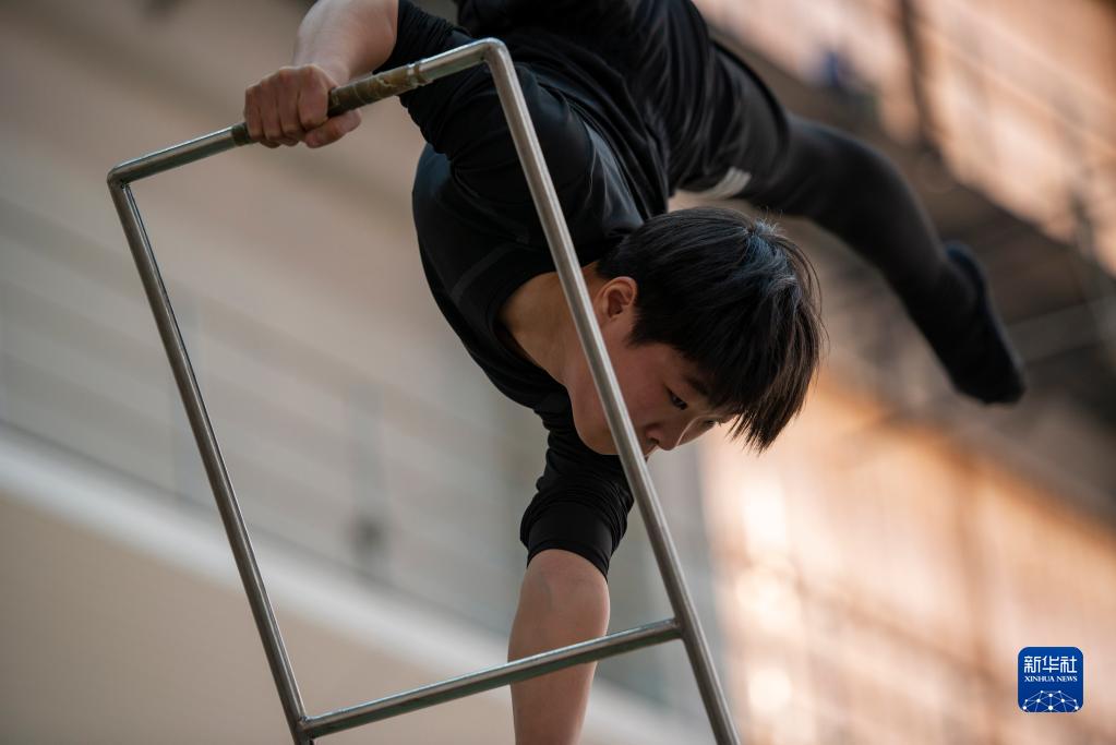 3月31日,演員在位于江蘇省鹽城市建湖縣的江蘇省雜技團訓練。