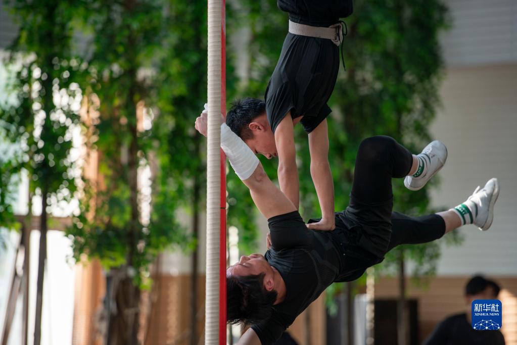 3月31日,演員在位于江蘇省鹽城市建湖縣的江蘇省雜技團訓練。