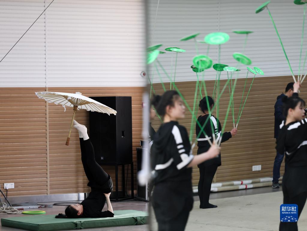 3月31日,演員們在位于江蘇省鹽城市建湖縣的江蘇省雜技團訓練。
