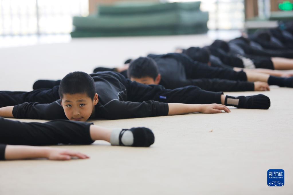 3月31日,演員在位于江蘇省鹽城市建湖縣的江蘇省雜技團訓練。