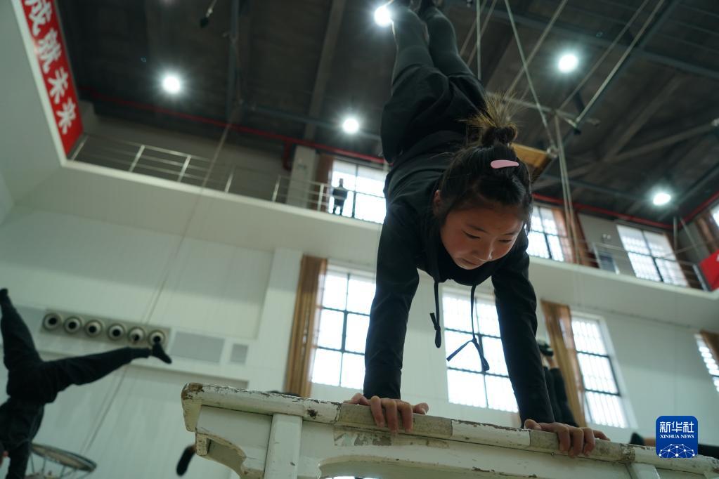 3月31日,演員在位于江蘇省鹽城市建湖縣的江蘇省雜技團訓練。
