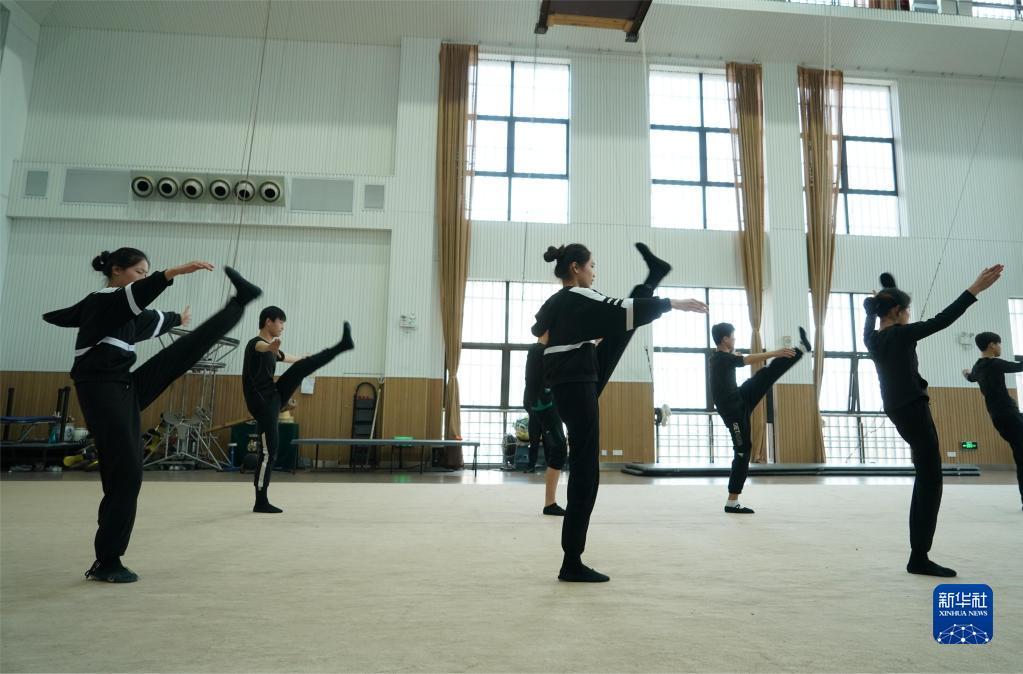 3月31日,演員在位于江蘇省鹽城市建湖縣的江蘇省雜技團訓練。
