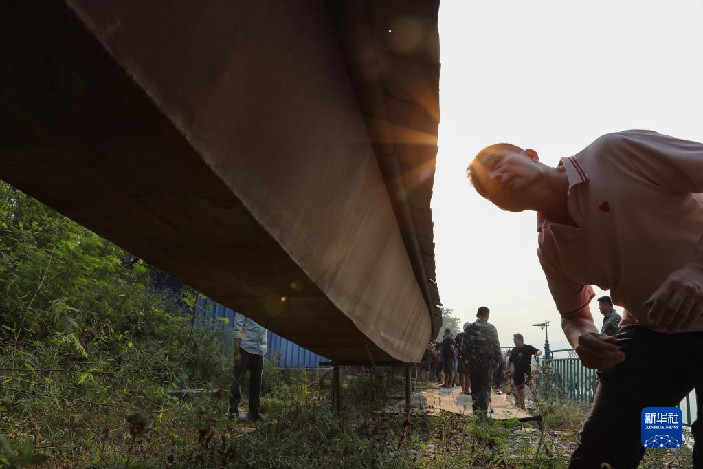 4月1日,景洪市勐罕鎮曼聽(tīng)村村民在龍舟下水前檢查龍舟。