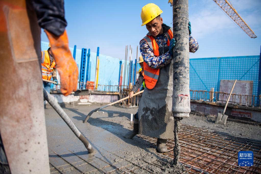 4月1日,在長(cháng)沙岳麓山實(shí)驗室集聚區農大片區項目建設現場(chǎng),工人在進(jìn)行封頂施工作業(yè)。