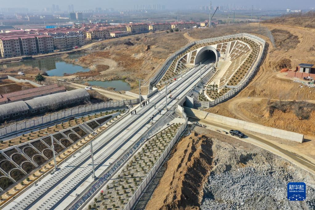 俯瞰萊榮鐵路神童山隧道段(3月30日攝,無(wú)人機照片)。