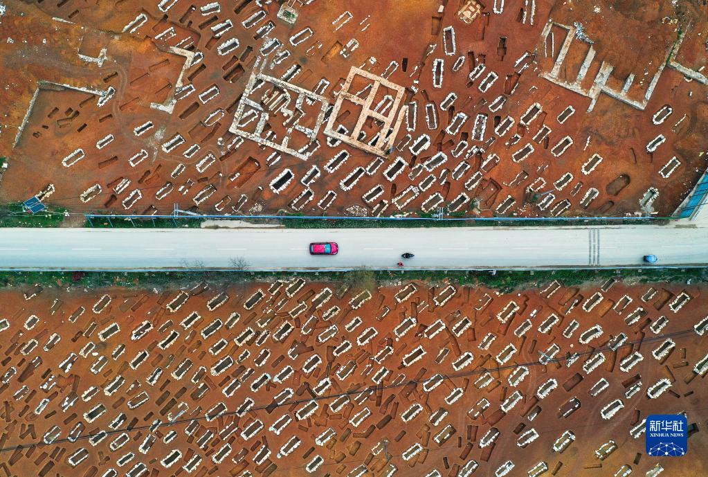 3月30日拍攝的貴州貴安新區大松山墓群挖掘現場(chǎng)(無(wú)人機照片)。