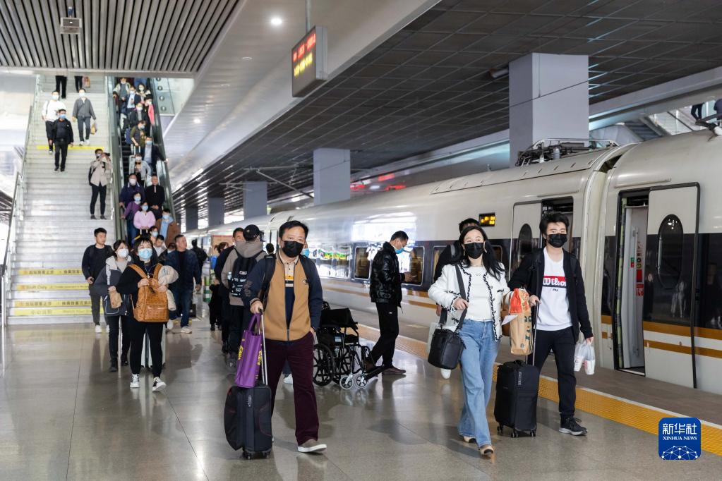 4月1日,準備乘坐G99次列車(chē)的旅客陸續進(jìn)站乘車(chē)。