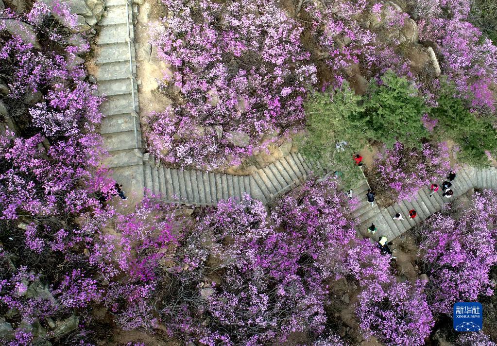 近日,山東青島西海岸新區大珠山萬(wàn)畝野生杜鵑進(jìn)入盛花期,漫山遍野的杜鵑花吸引游客前往賞花游玩,享受春光。