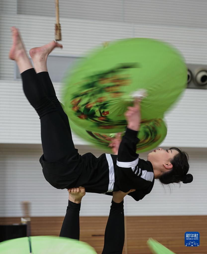 3月31日,演員在位于江蘇省鹽城市建湖縣的江蘇省雜技團訓練。