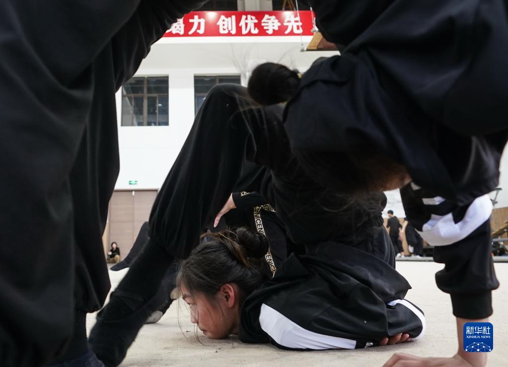 3月31日,演員在位于江蘇省鹽城市建湖縣的江蘇省雜技團訓練。