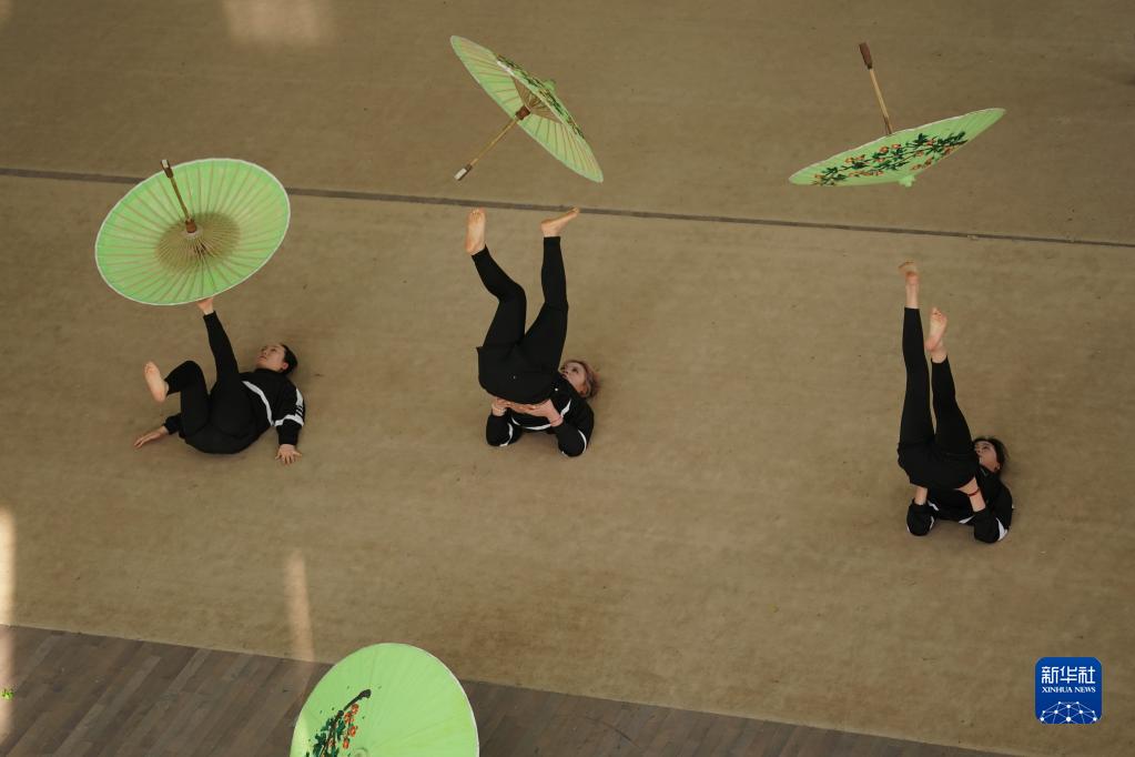 3月31日,演員在位于江蘇省鹽城市建湖縣的江蘇省雜技團訓練。
