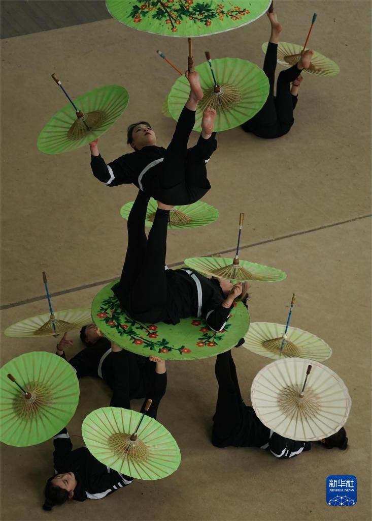 3月31日,演員在位于江蘇省鹽城市建湖縣的江蘇省雜技團訓練。