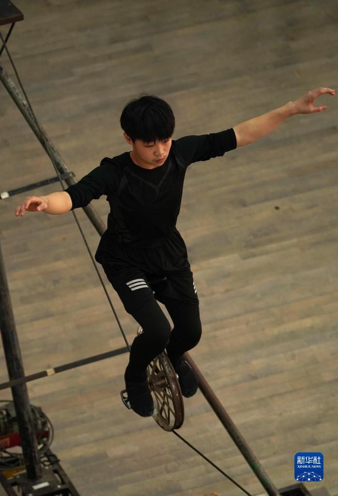 3月31日,演員在位于江蘇省鹽城市建湖縣的江蘇省雜技團訓練。