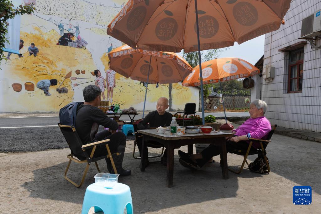 這是在寶勝村村屋墻壁上展出的影像藝術(shù)作品(4月1日攝)。