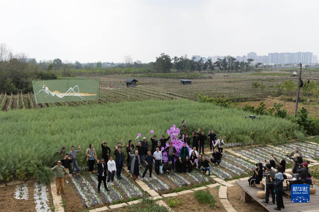 4月1日,參加影像藝術(shù)展的嘉賓在田間合影。