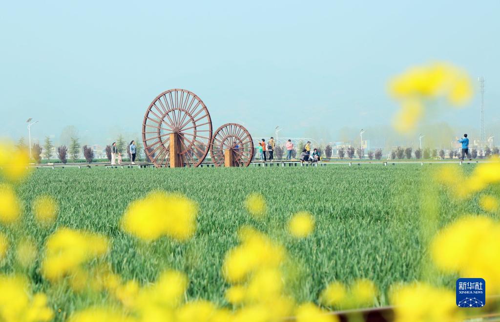 4月1日,在汝陽(yáng)縣三屯鎮東保村千畝油菜花田,游人賞花觀(guān)景。