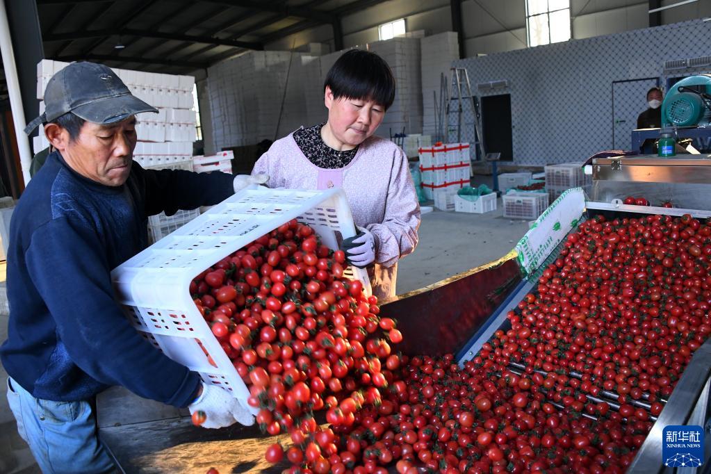 4月1日,在山東省棗莊市臺兒莊區馬蘭屯鎮按揭農業(yè)基地,菜農在分選包裝西紅柿。