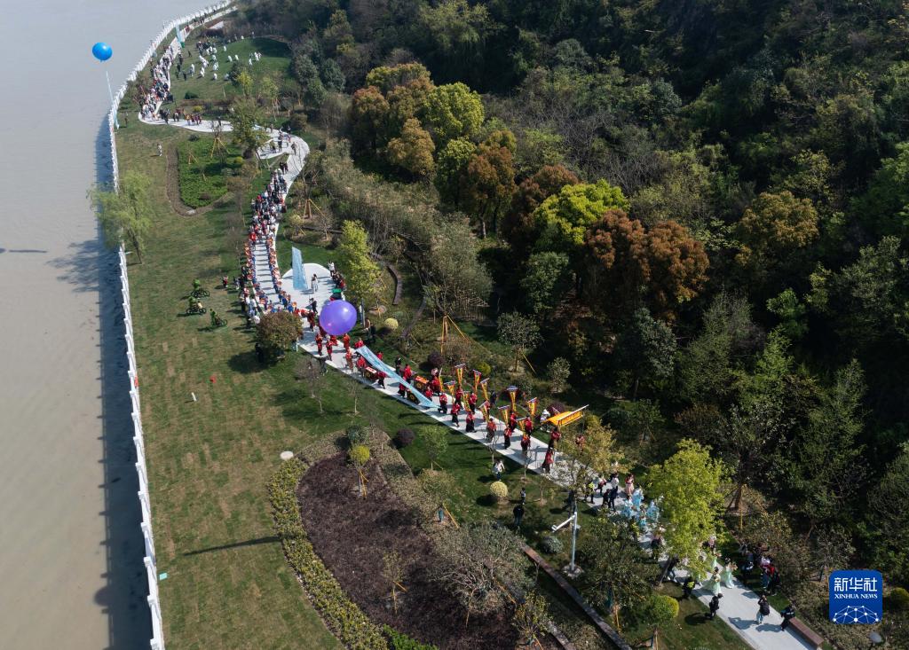 4月2日拍攝的蠶花節民俗巡游活動(dòng)(無(wú)人機照片)。