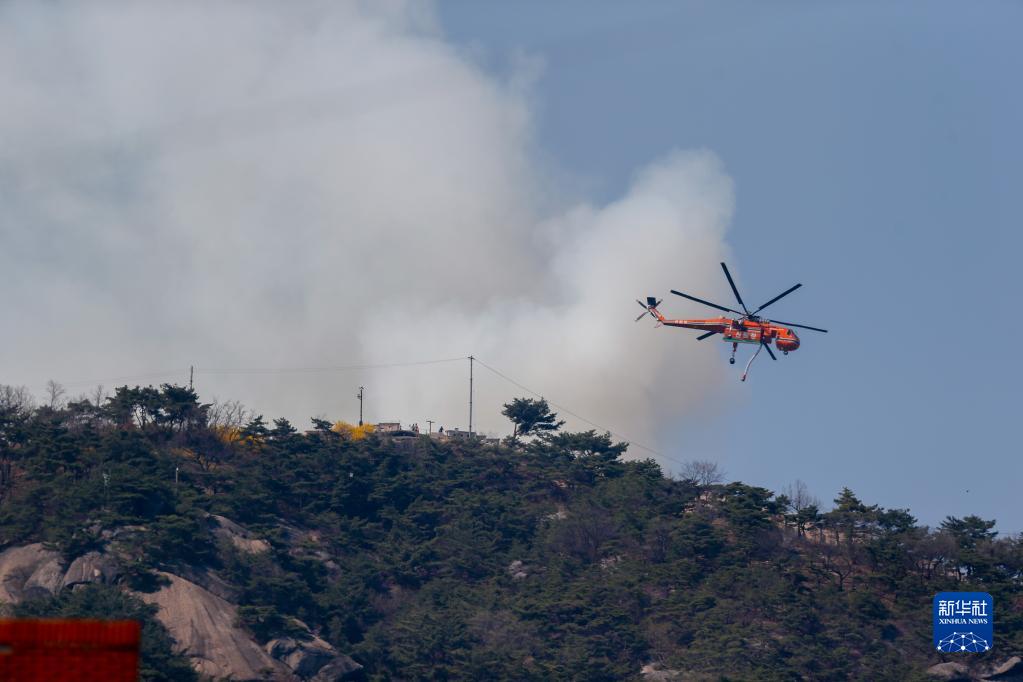 4月2日,直升機在韓國首爾市仁王山上空執行滅火作業(yè)。