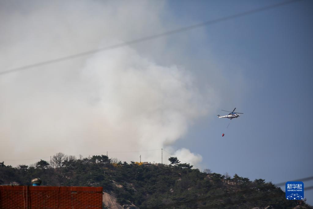 4月2日,直升機在韓國首爾市仁王山上空執行滅火作業(yè)。