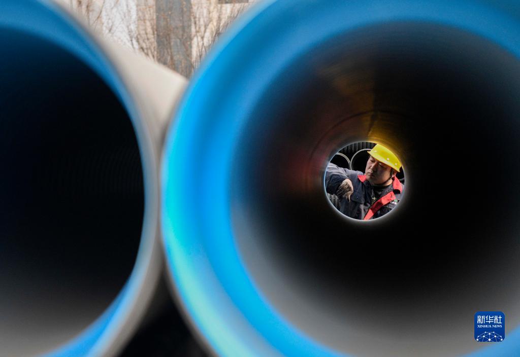 4月2日,在承德縣高新技術(shù)產(chǎn)業(yè)開(kāi)發(fā)區一家環(huán)保管材生產(chǎn)企業(yè),工人在檢查管材質(zhì)量。