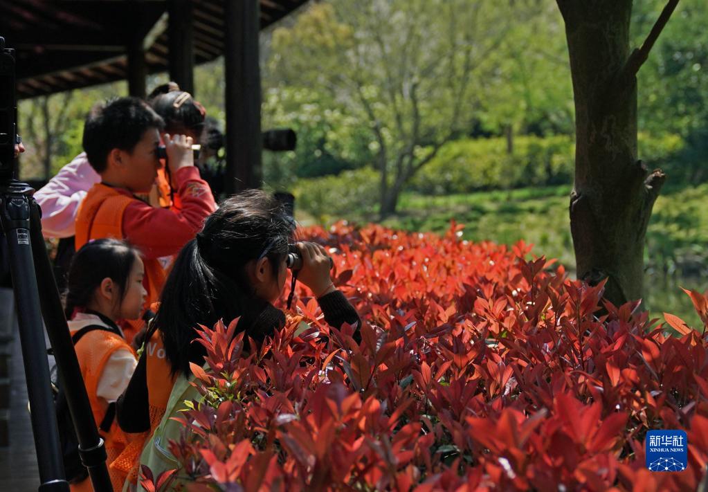 4月2日,在上海共青森林公園,小朋友們參加觀(guān)鳥(niǎo)活動(dòng)。