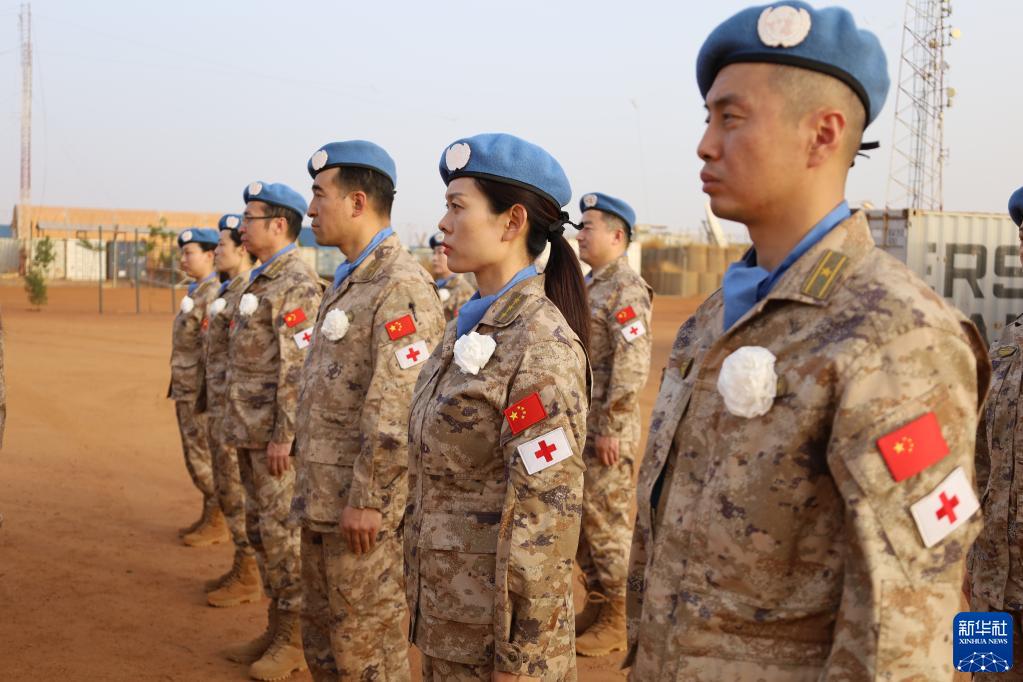 中國第十批赴馬里維和醫療分隊當日在聯(lián)合國駐馬里多層面綜合穩定特派團(馬里穩定團)東戰區加奧超營(yíng)的維和烈士廣場(chǎng)開(kāi)展清明祭掃活動(dòng),悼念藍盔忠魂。