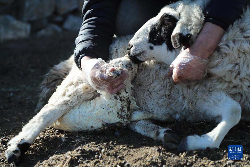 3月29日,朝克德力根幫助母羊熟悉新生羊羔的氣味。
