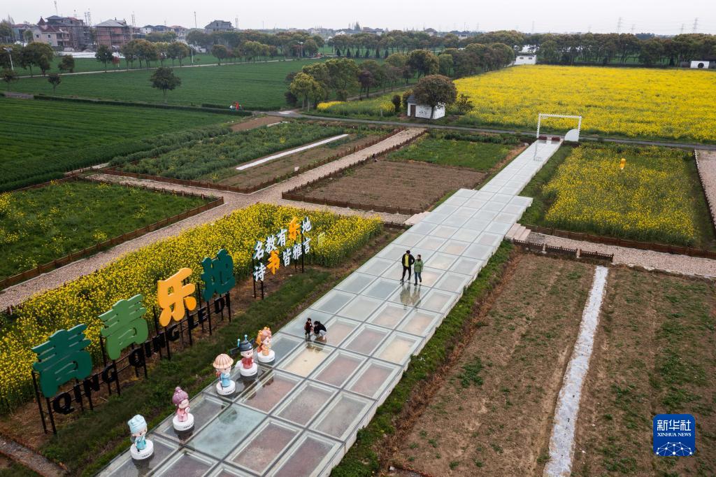 空中俯瞰嘉興市秀洲區王店鎮鎮中村的“青青樂(lè )地”農耕文化園(4月3日攝,無(wú)人機照片)。